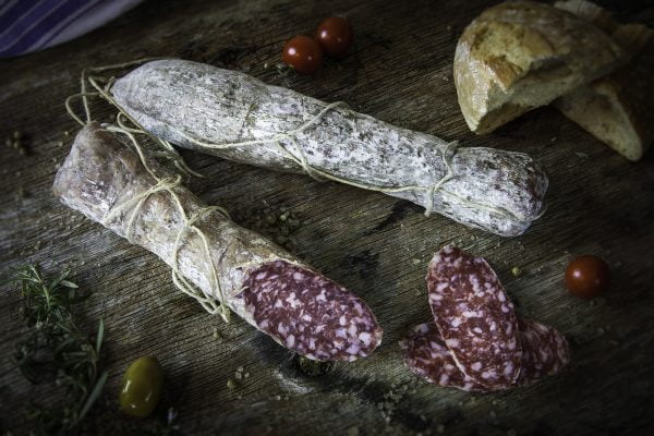 INGREDIENTI: CARNE DI SUINO, SALE, SACCAROSIO, SPEZIE, ANTIOSSIDANTE E301, CONSERVANTI: E252, E250